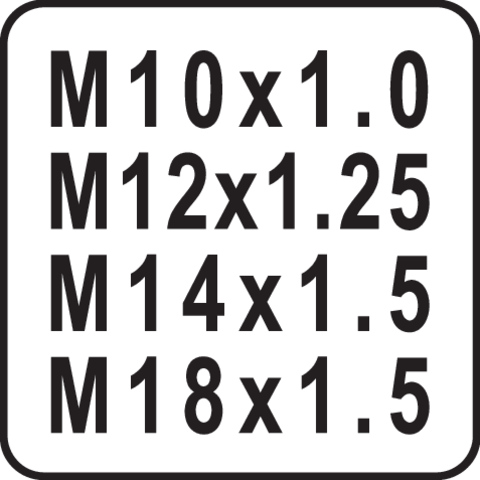 - Závity: M10 x 1, M12 x 1,25, M14 x 1,5, M18 x 1,5