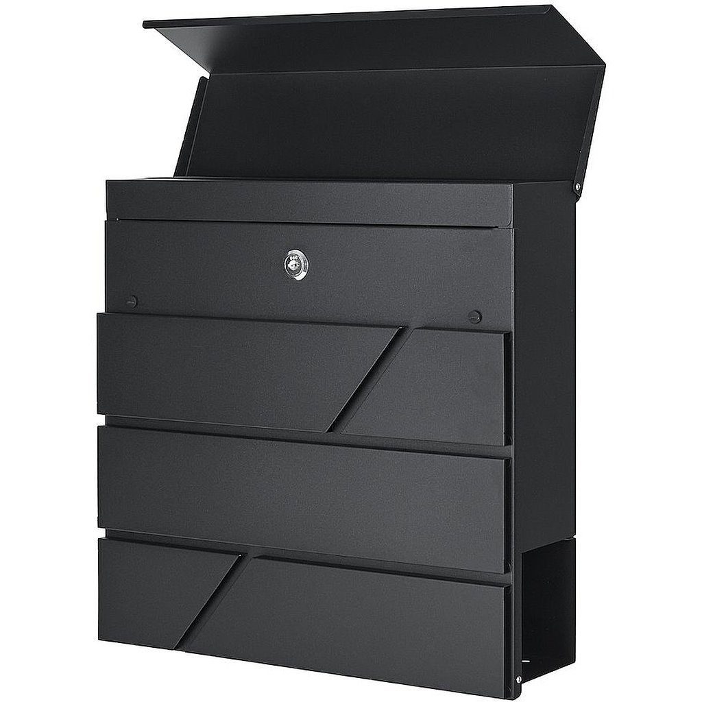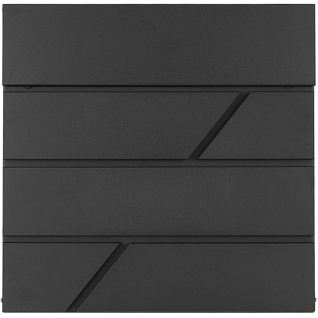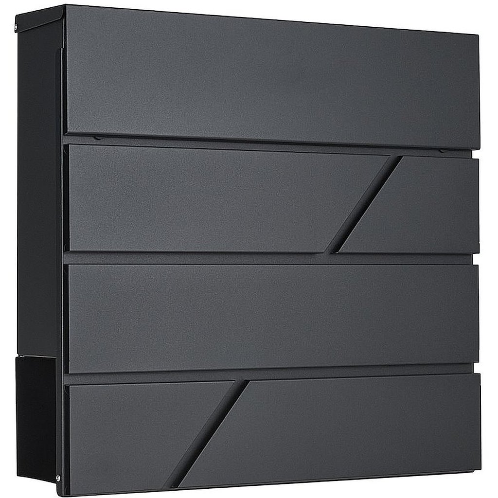 Táto elegantná, minimalistická poštová schránka s rozmermi 36,7 x 37 x 10 cm kombinuje štýl a praktickosť. Vyrobená z vysoko kvalitnej práškovo lakovanej ocele v módnej antracitovej farbe, dokonale zapadá do modernej architektúry obytných a kancelárskych budov. Geometrická razba na prednej strane jej dodáva jedinečný dizajnový vzhľad.