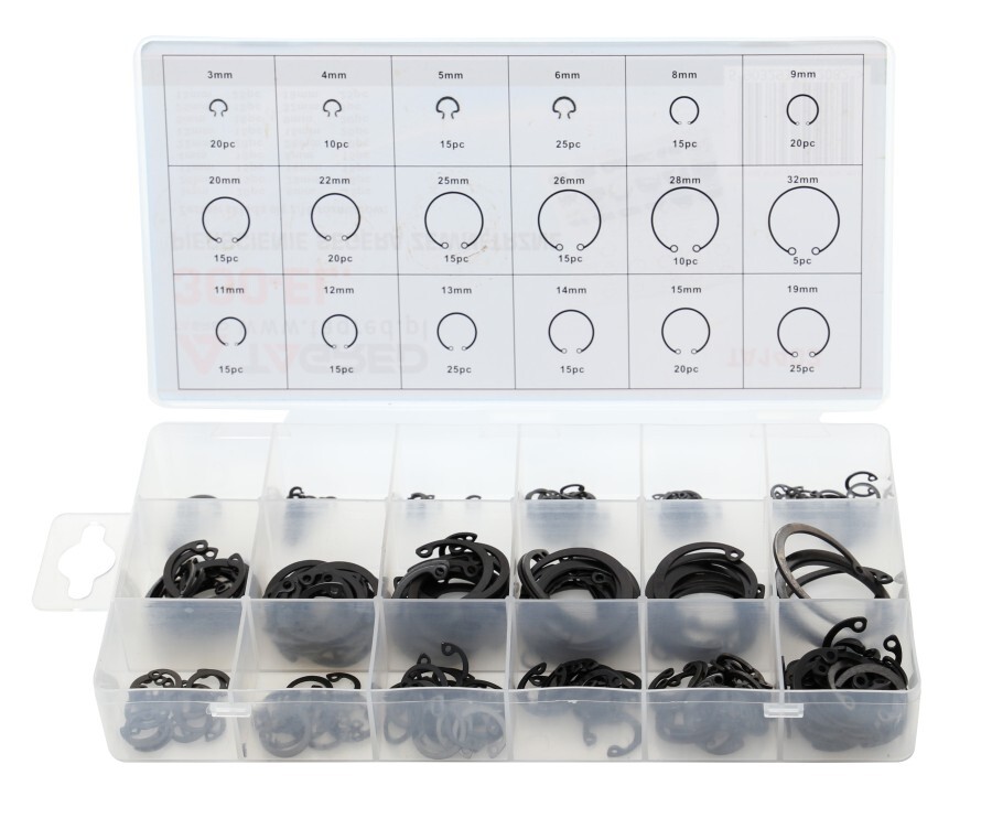 Kompletná sada 300 vnútorných poistných krúžkov. Krúžky dobre držia a sú vyrobené z odolnej pružinovej ocele. Rozmanitosť veľkostí v súprave zaisťuje, že nájdeme tú správnu veľkosť, ktorú potrebujeme. Súpravu je možné použiť v každej profesionálnej dielni.