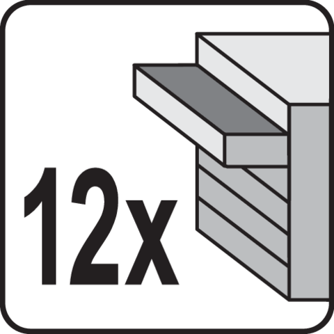 Servisná skrinka s 12 zásuvkami, určená pre garáže a servisy vozidiel. Pracovná doska z kaučukového dreva. Univerzálna perforácia umožňuje dodatočnú montáž skrinky. Rohové nárazníky chránia pred náhodným poškodením, napr. karosérie vozidla.