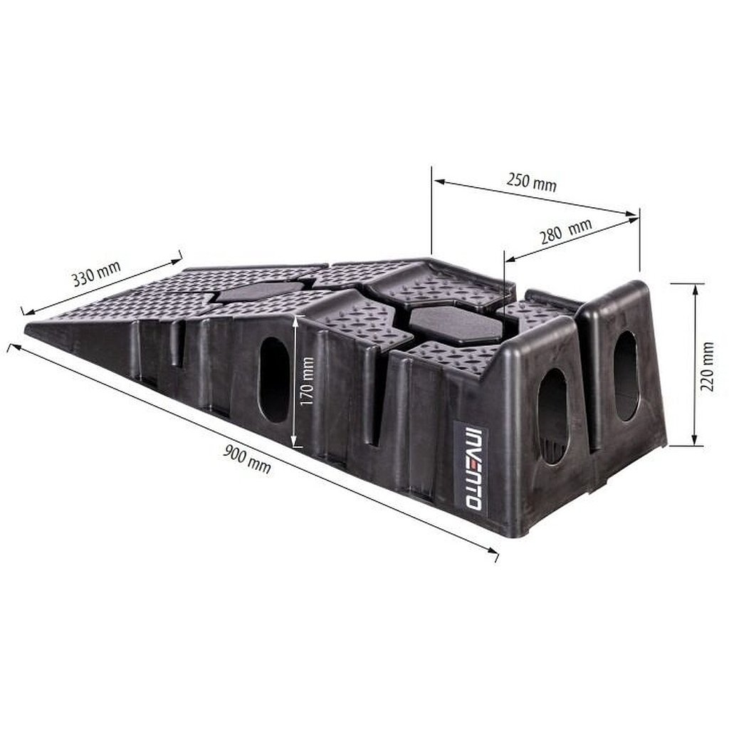 - Stabilná a odolná konštrukcia: Rampy sú vyrobené z kvalitného materiálu, odolného voči prasklinám a deformáciám. Bez problémov unesú zaťaženie až 2,5 tony (2 500 kg) na súpravu, čo z nich robí ideálnu voľbu pre prácu s osobnými automobilmi, SUV a ľahkými úžitkovými vozidlami.