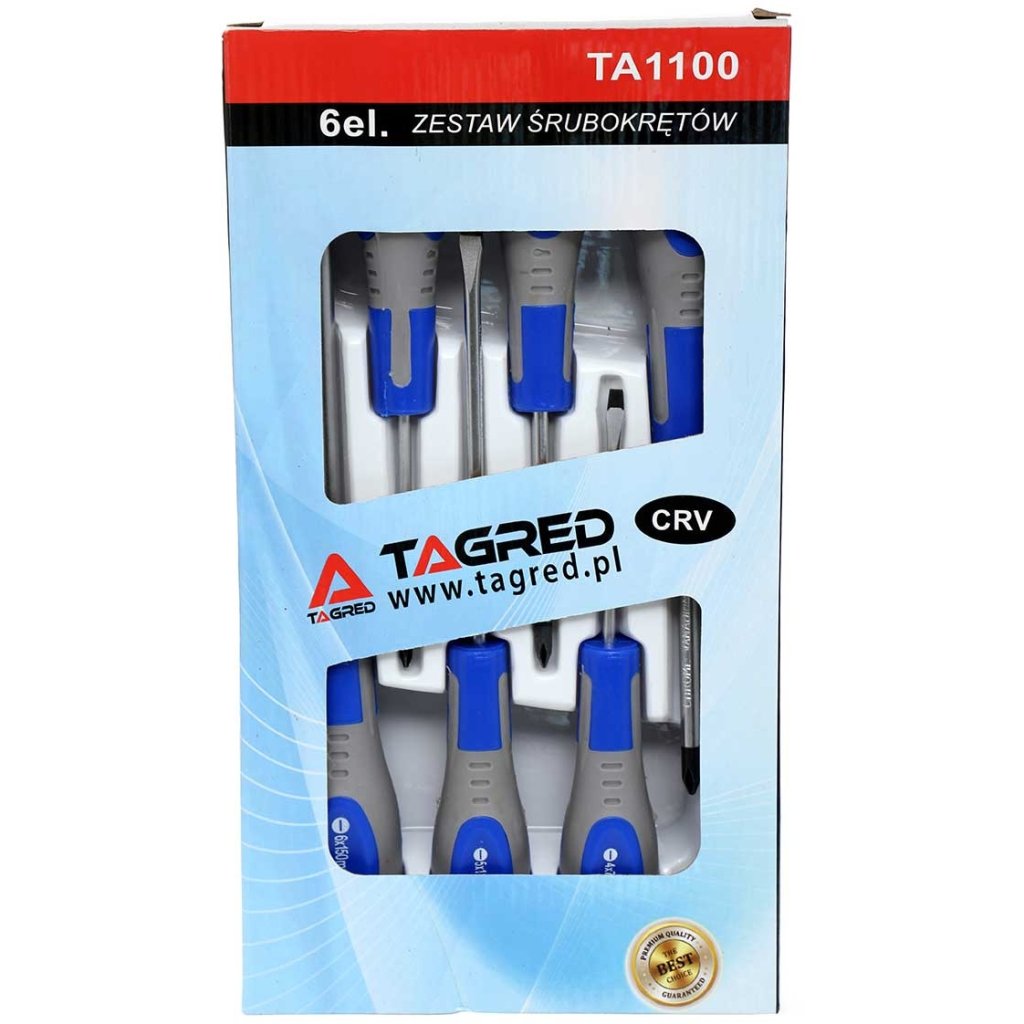 Sada skrutkovačov je vyrobená z vysoko kvalitných materiálov vrátane chróm-vanádovej ocele, hroty majú saténovú povrchovú úpravu, ktorá chráni pred koróziou, a hroty hrotov sú navyše pieskované a zmagnetizované, čo umožňuje pevné uchopenie hlavy skrutky. Rukoväť je vyrobená z plastu a potiahnutá gumovým povlakom, čo zaisťuje pevné držanie v ruke.