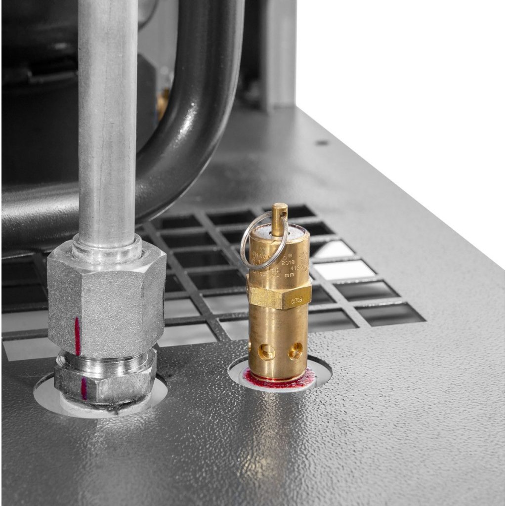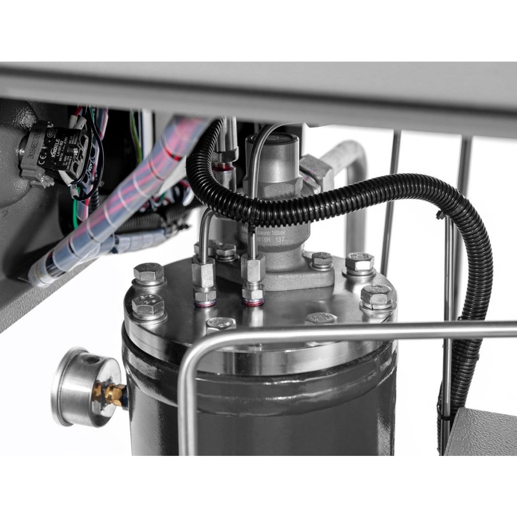 - Zintegrowany zbiornik powietrza – Zbiornik o pojemności 200 litrów zapewnia stabilne ciśnienie robocze oraz zapas sprężonego powietrza, idealny do wielu zastosowań przemysłowych, w tym zasilania narzędzi pneumatycznych i urządzeń produkcyjnych.