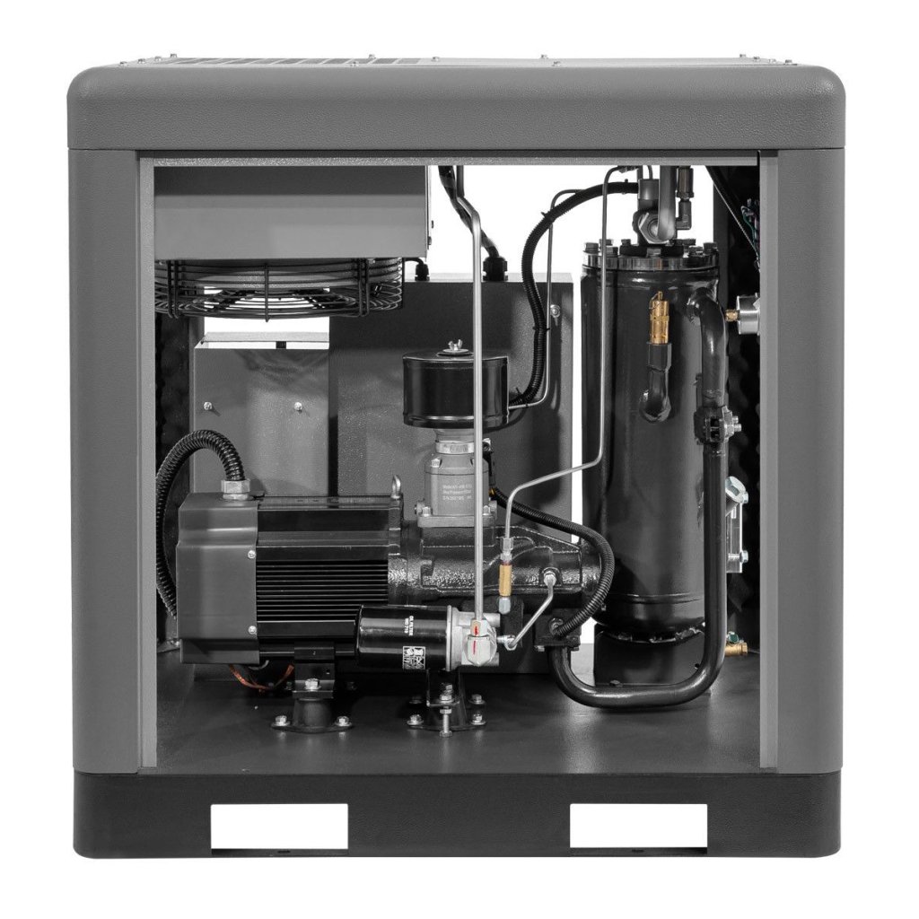 Kompresor APS 7.5 IVR X G2 je vybavený synchrónnym motorom s invertorom, ktorý umožňuje nastavenie otáčok motora podľa aktuálnej potreby. Invertor optimalizuje spotrebu energie, čo vedie k výrazným úsporám. Motor s energetickou triedou IE3 je vysoko účinný a ponúka až o 8 % vyššiu účinnosť ako bežné pohonné jednotky. Inovatívna konštrukcia motora bez ložísk znižuje náklady na údržbu a predlžuje životnosť jednotky, vďaka čomu je kompresor mimoriadne odolným a nákladovo efektívnym riešením.