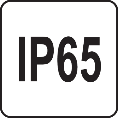 IP65 - prachotesné krytie, ochrana proti prúdom vody (12,5 l/min) vylievajúcim sa na kryt z ktorejkoľvek strany.