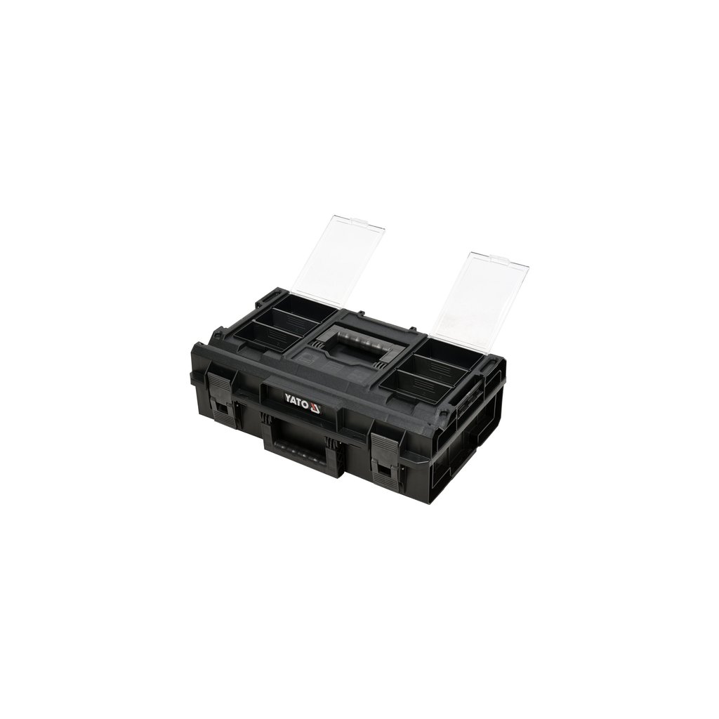 Viacúčelový box umožňuje pohodlné skladovanie a prenášanie náradia aj drobných doplnkov. Môže byť jedným z modulov systému, ktorý sa umiestňuje na základný box YT-09166.