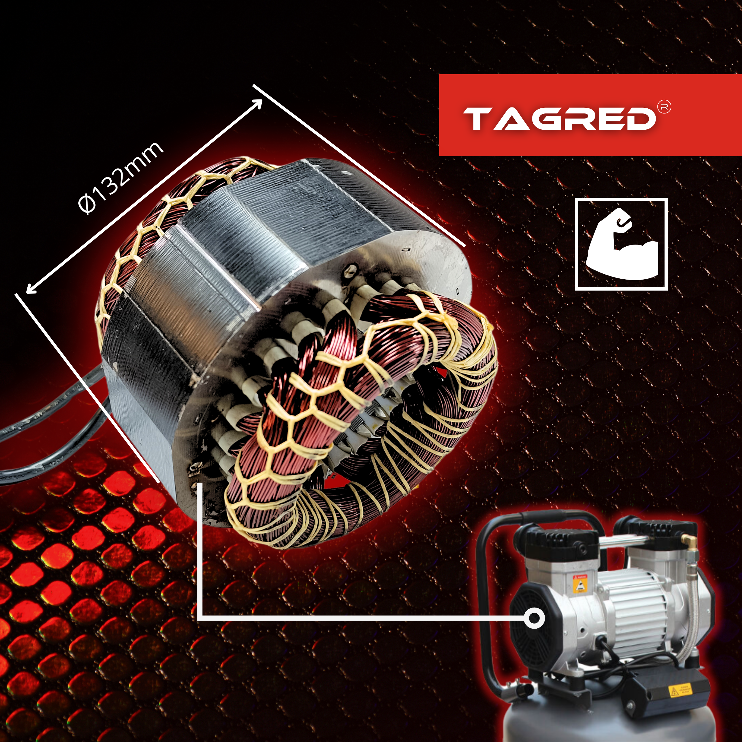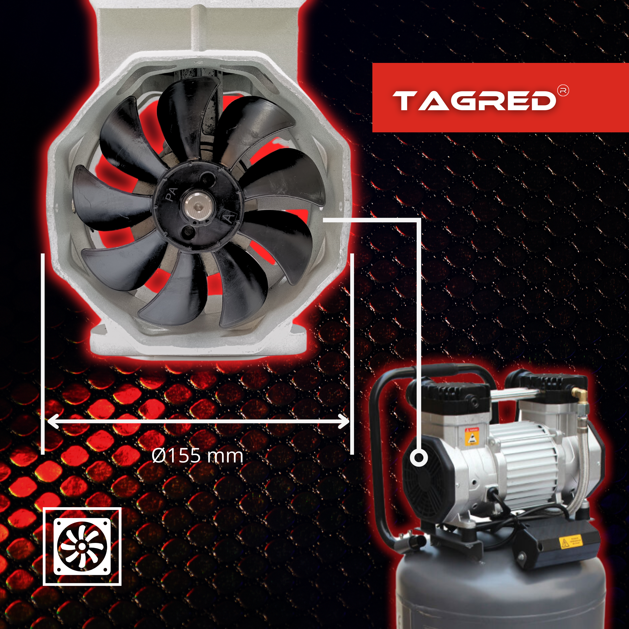 Bezolejový kompresor TAGRED využíva funkčnú a prakticky bezúdržbovú zostavu piest-membrána. Vďaka použitému riešeniu pracuje vzduchový kompresor efektívne a môže byť použitý v technických miestnostiach aj doma.