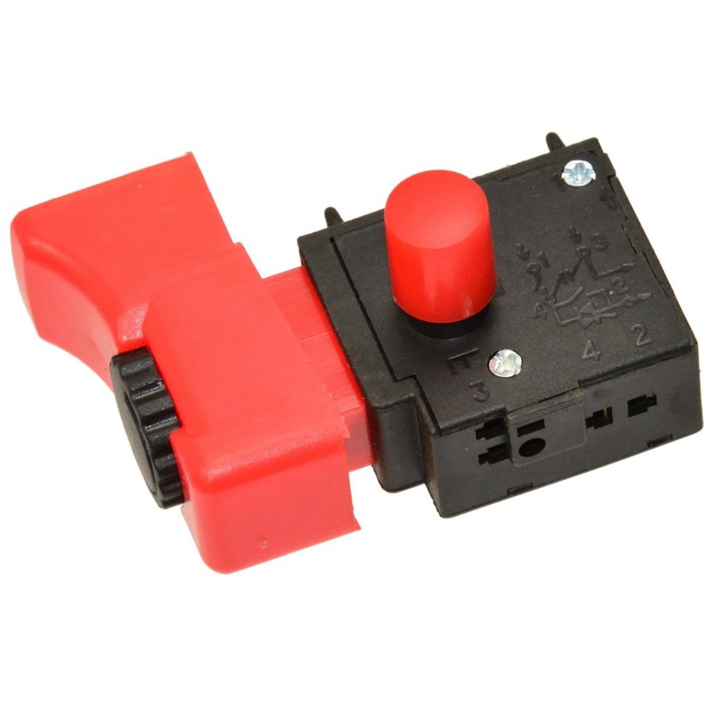 Tlačidlový spínač pre brúsku typu DWT. Má reguláciu otáčok a zámok spínača v polohe trvalo zapnuté.
