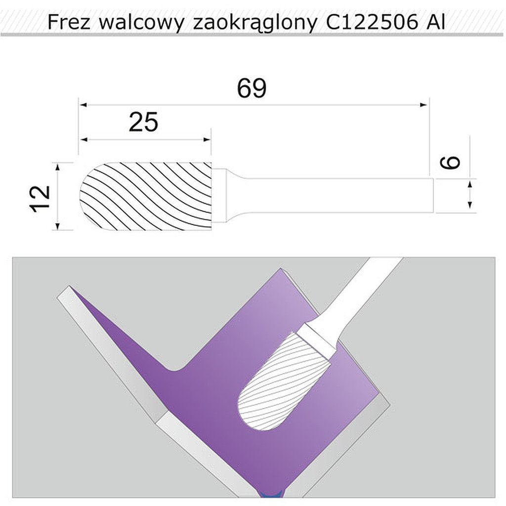 Stopková fréza s pracovnou časťou vyrobenou z karbidu volfrámu, určená na rezanie hliníka. Poskytuje dobré rezné vlastnosti a dlhú životnosť.