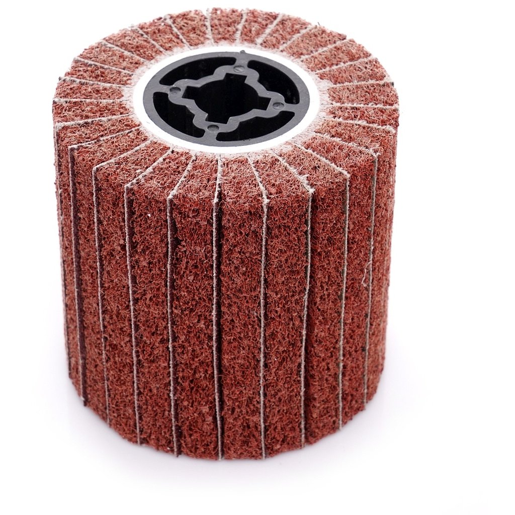 Valcový kotúč je vyrobený zo striedajúcich sa plátov brúsneho plátna a netkanej textílie. Náš brúsny kotúč tak zaisťuje rovnomerné, presné brúsenie a estetickú úpravu opracovávaného povrchu. Použitie abrazívneho plátna robí brúsenie hlbšie a agresívnejšie. Netkaná textília TAGRED sa vyznačuje vysokou elasticitou - svojím tvarom sa dokonale prispôsobí spracovanému povrchu. Valec sa neupcháva a neprehrieva, takže nesfarbuje a nespaľuje opracovávaný povrch.