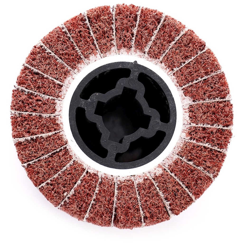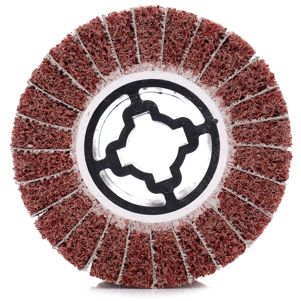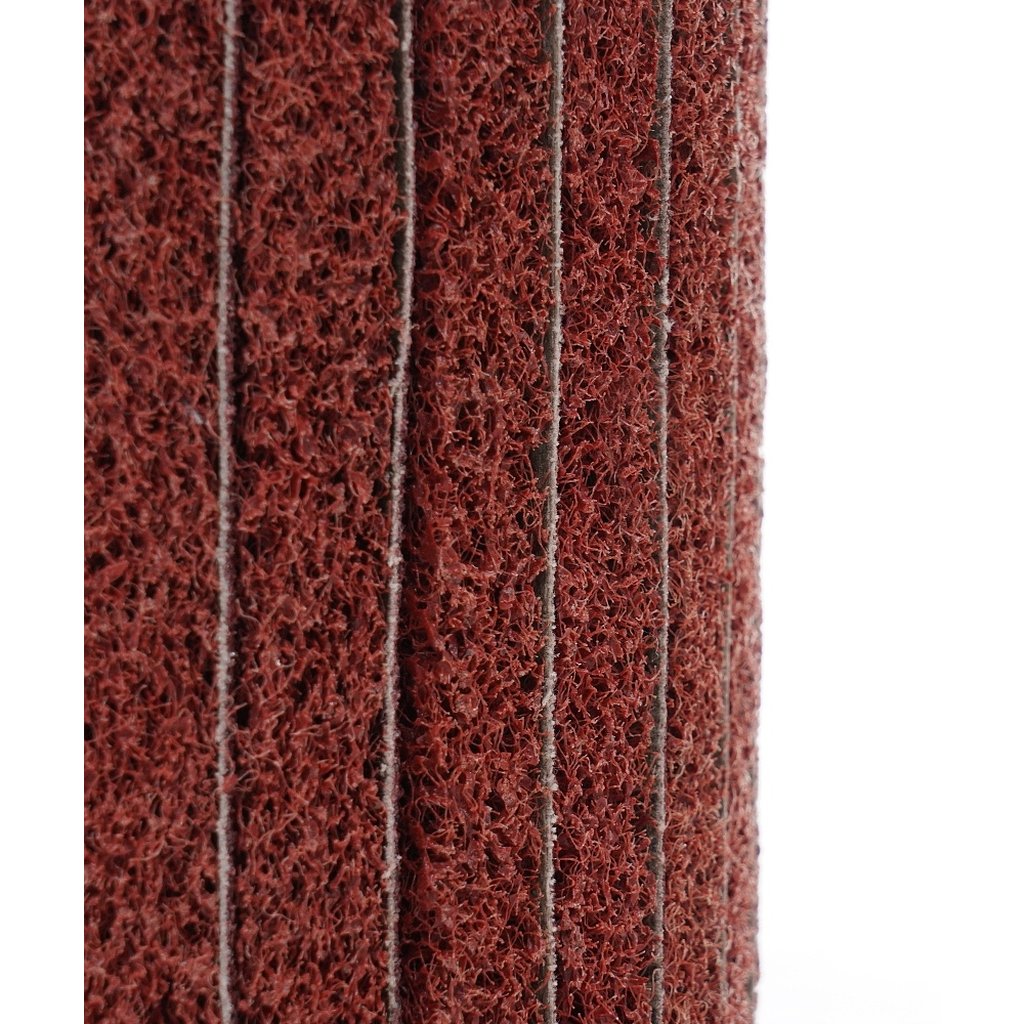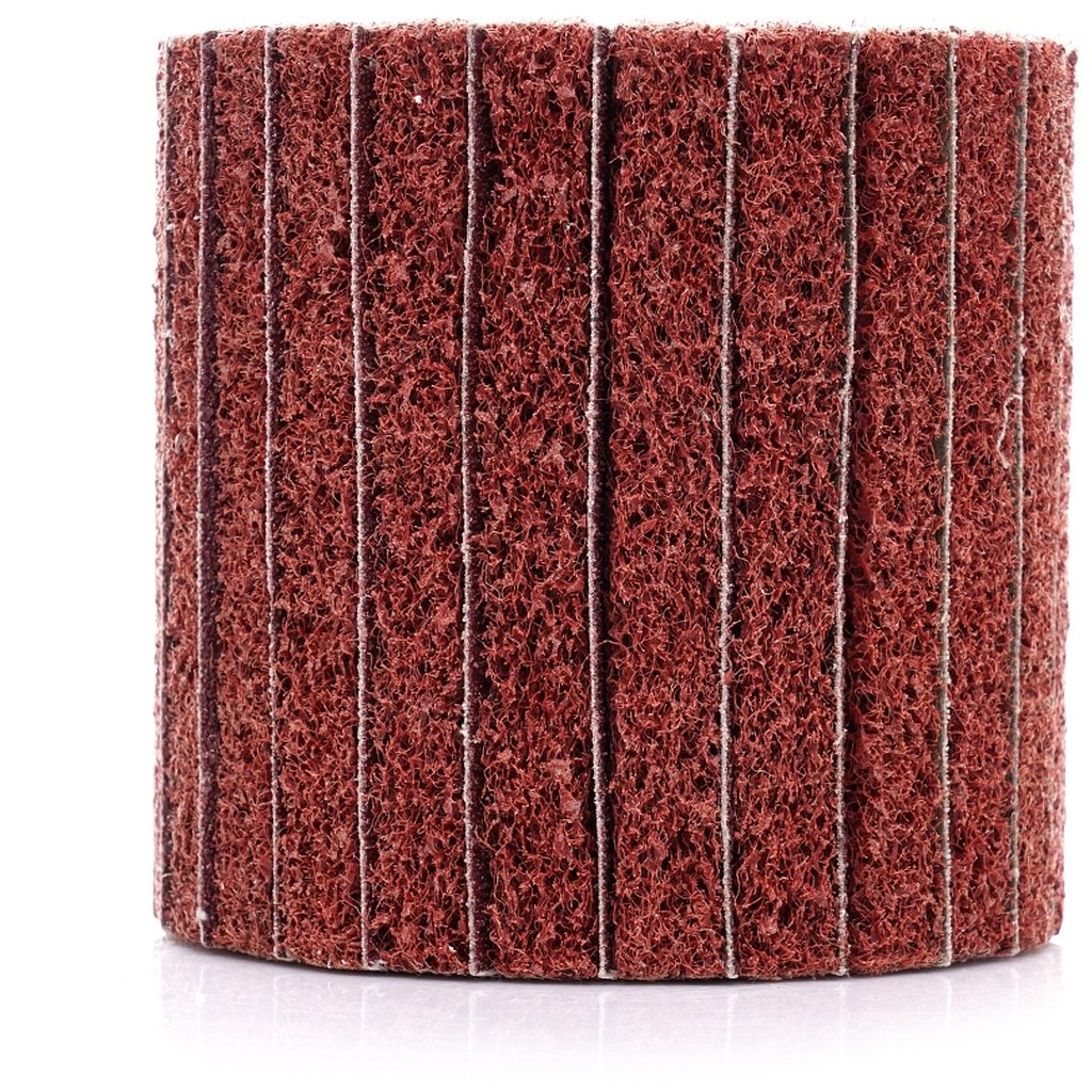 Valcový brúsny kotúč z netkanej textílie 100x100x19 P80 COARSE vyrobený zo striedajúcich sa listov brúsnej tkaniny a netkanej textílie.