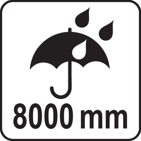- vodoodolnosť 8000 mm (m² tkaniny vydrží tlak vodného stĺpca 8 m - 8000 mm bez toho, aby došlo k úniku vody)