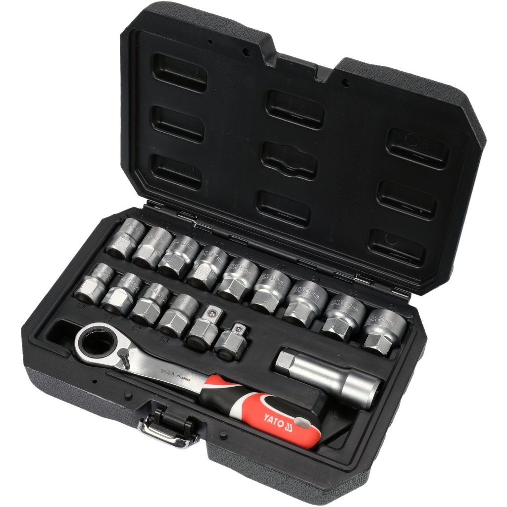 YATO Gola sada SPLINE 17 ks, 3/8" a 1/2" – priechodné hlavice