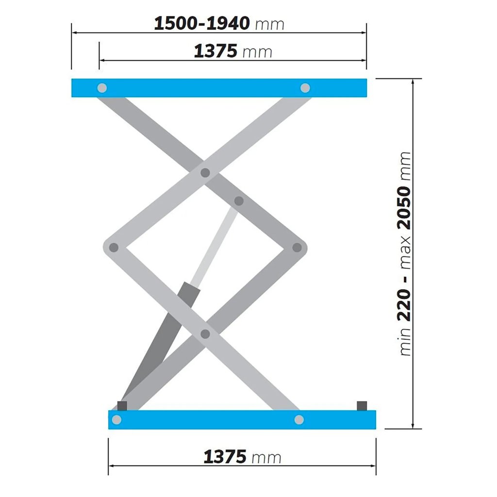 - Dĺžka zdviháka s rampami: 1500-1940 mm