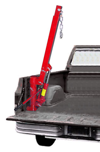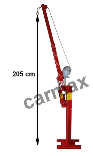 zdvihnutý hydraulickým valcom (ručné pumpovanie zdvihne rameno a odskrutkovanie ventilu spustí rameno)