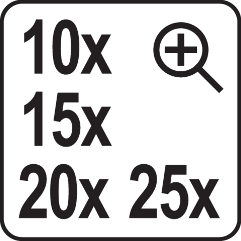 - Súčasťou balenia sú 4 páry vymeniteľných zväčšovacích skiel: 10x, 15x, 20x, 25x