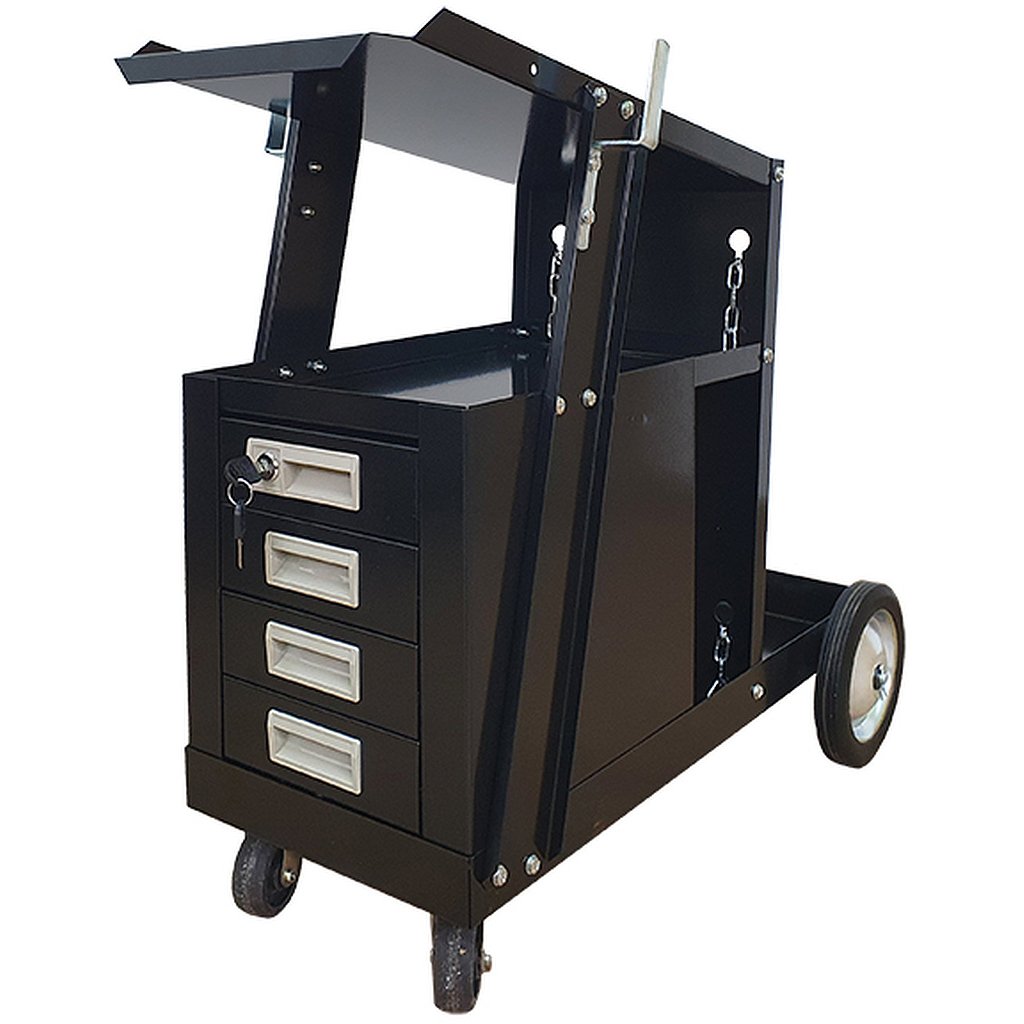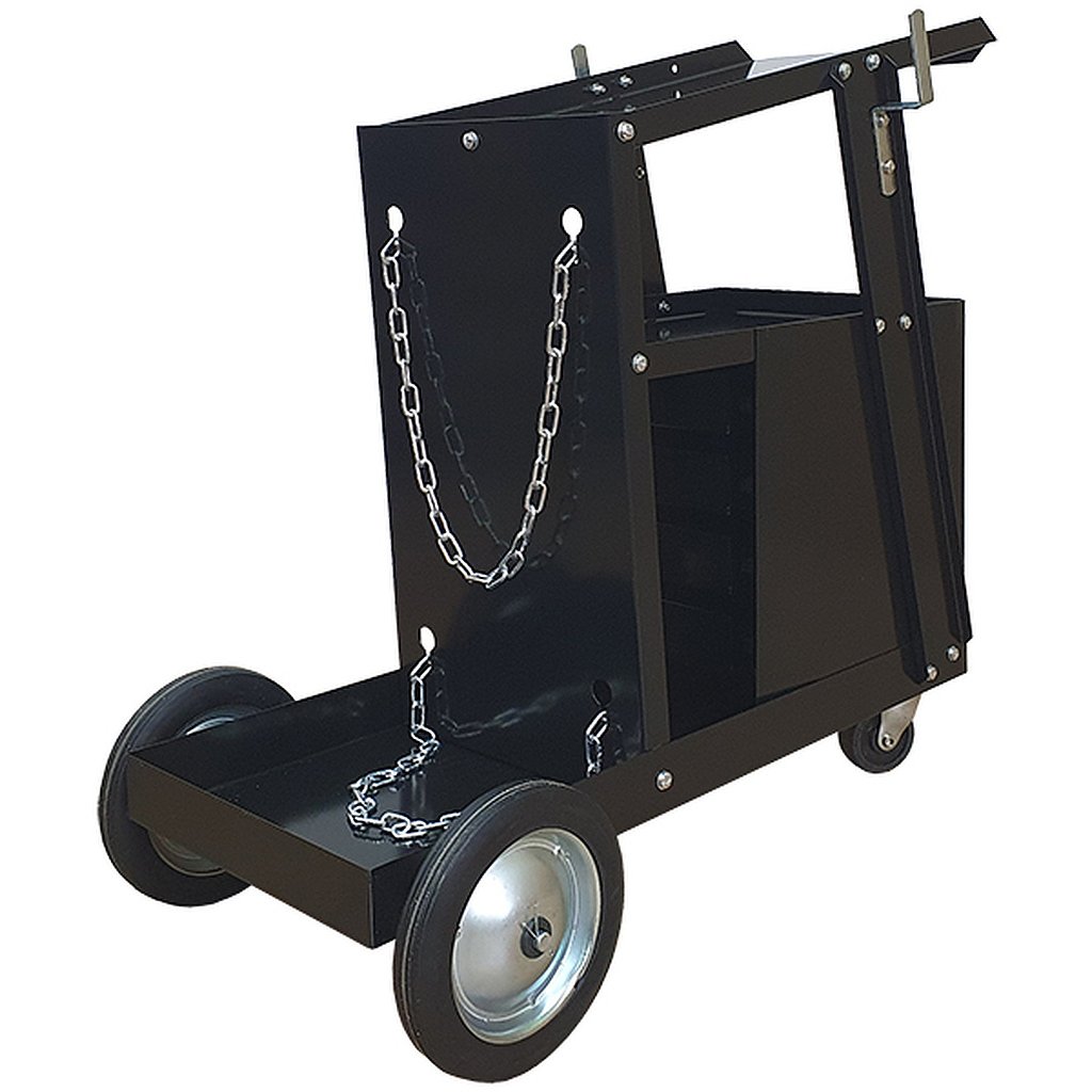 Zvárací vozík MIG so zásuvkami je ľahký prepravný podvozok určený na prepravu zváracích súprav TIG, MIG alebo plazmových zváracích súprav, ako aj na akékoľvek použitie v dielňach. Dodáva sa v balení ako stavebnica na svojpomocnú montáž.